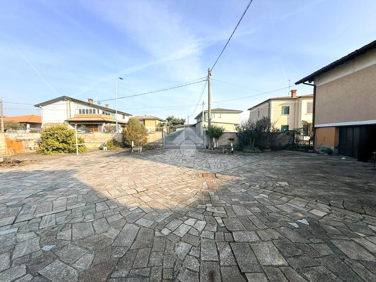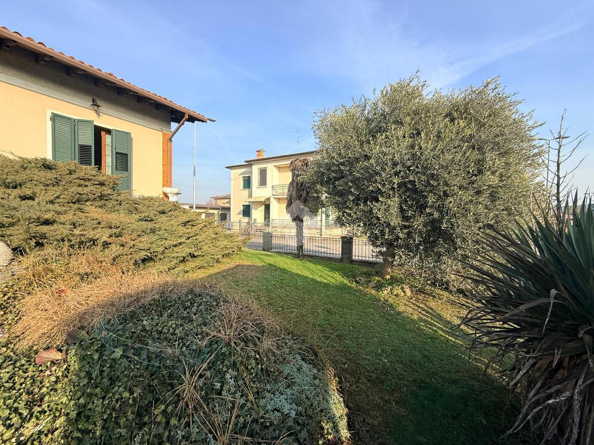 La proprietà è completata da un ampio spazio esterno composto da giardino e area pavimentata adibita a parcheggio, oltre a un sottotetto collegato internamente.